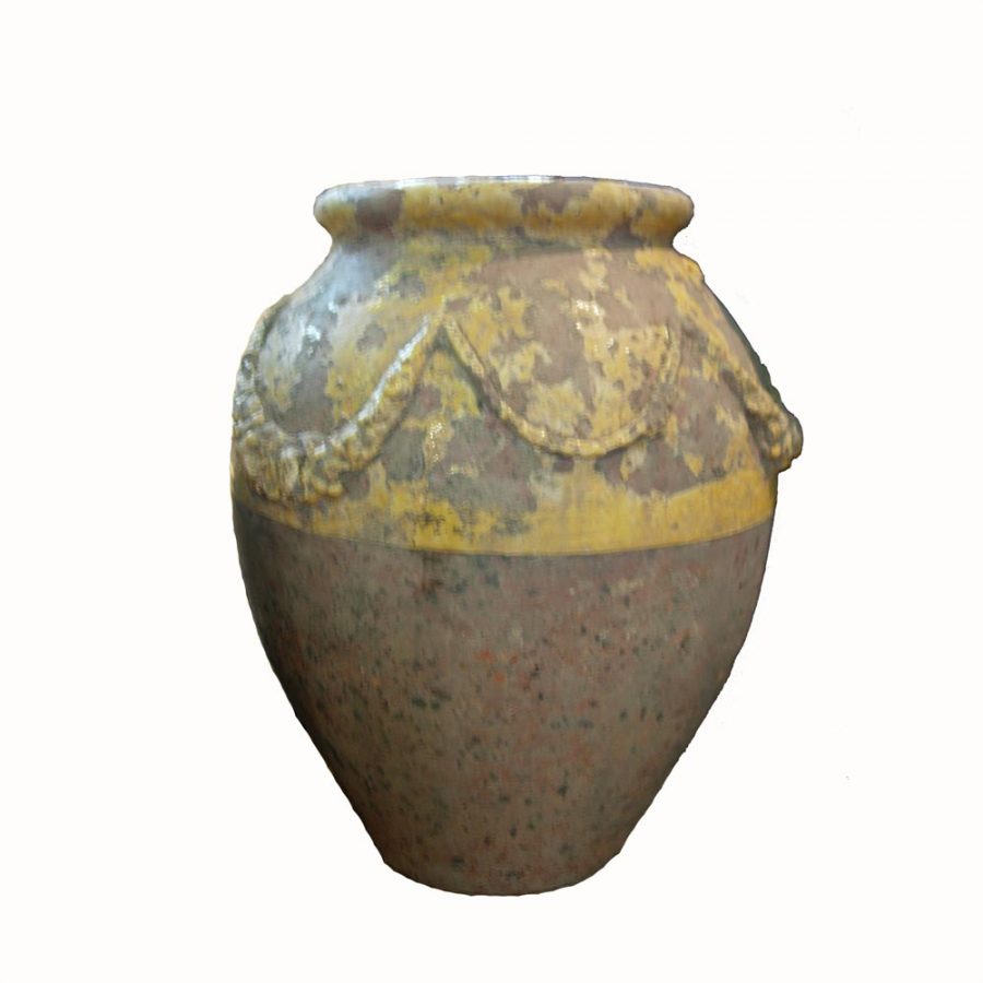 Amphore décorée d’une guirlande en relief, fabriquée à la corde.