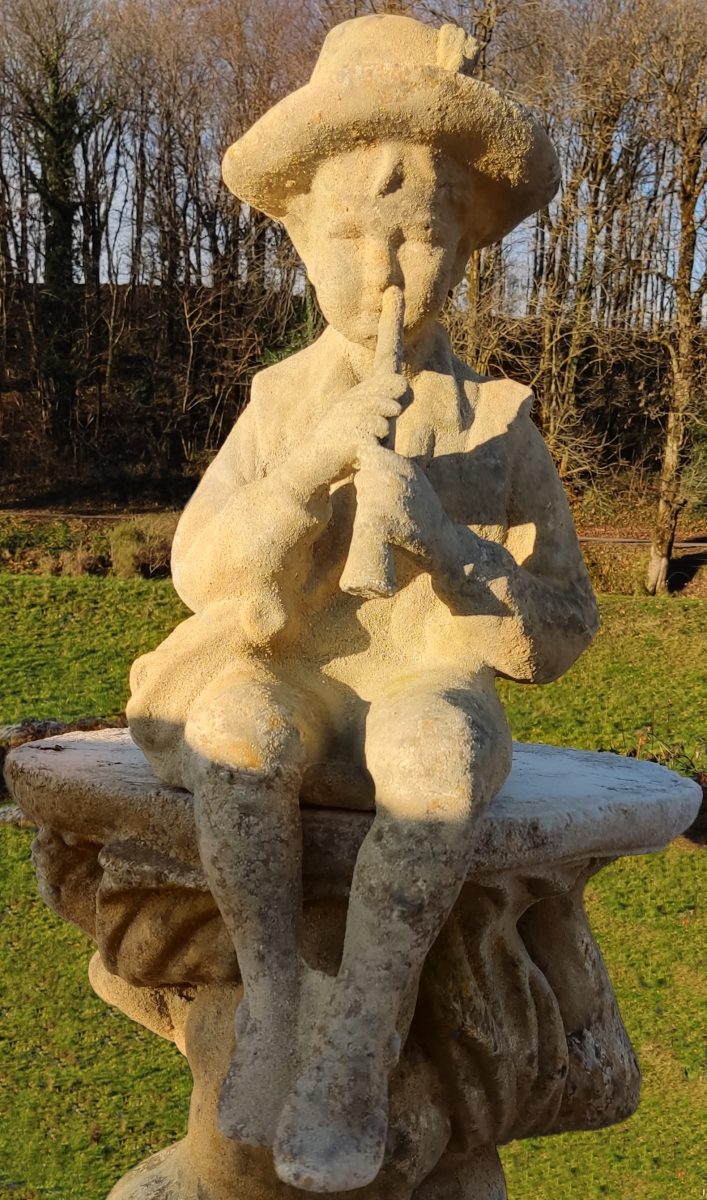 Statue de jardin en pierre reconstituée patinée.