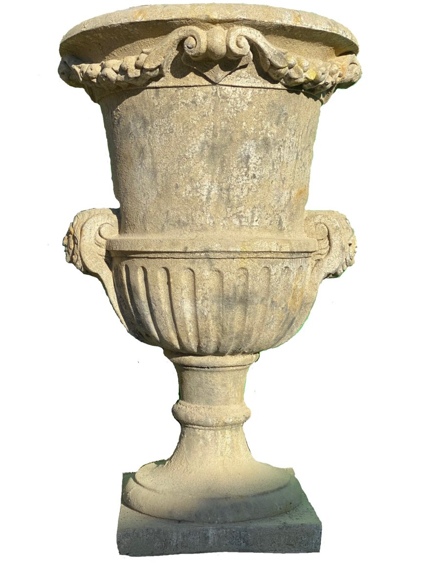 Vase décoratif en pierre reconstituée patinée.