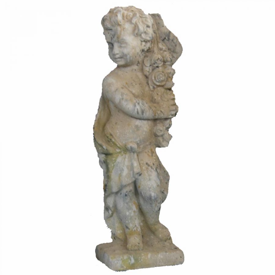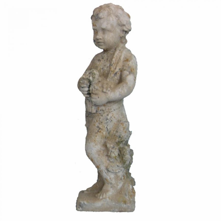Putti décoratif en pierre reconstituée patinée.