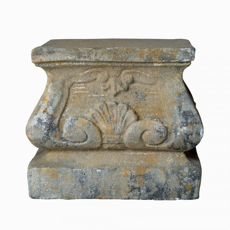 Socle en pierre reconstituée pour mise en valeur.
