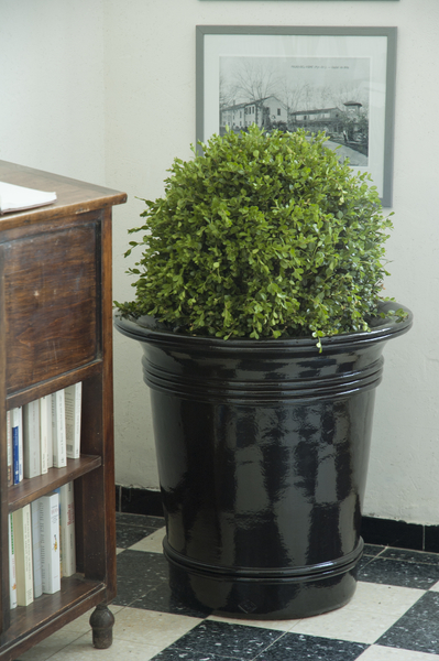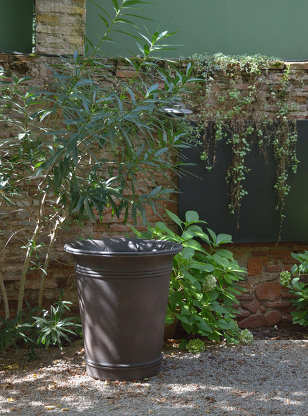 En extérieur abrité, il accompagne plantations ou compositions végétales contemporaines.